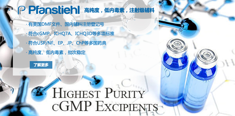 “熱烈祝賀Pfanstiehl的注射級甘氨酸Glycine(G-140)喜獲CDE登記號F20250000403, 這是Pfanstiehl產品獲得的第18個CDE登記號!”甘氨酸在醫藥輔料制劑中應用廣泛,, 可作為緩沖劑,增溶劑,穩定劑等,具有諸多優勢。Pfanstiehl秉承一貫高品質理念,為滿足全球生物制藥行業對于高品質甘氨酸的需求,隆重推出的注射級甘氨酸Glycine (G-140), 具有超高純度,超低內毒素,超低金屬殘留的特點,單獨檢測29種金屬離子,并且新增DNA,RNA,DNA酶,RNA酶和脂肪酶,亞硝酸鹽等多項質量指標的檢測,符合多國藥典規定(USP, EP, BP, JPE, ChP),可用于生物治療性藥物和疫苗的生產。產品信息:· 產品名稱:Glycine, High Purity, Low Endotoxin, Low Metals, USP, EP, BP, JPE, ChP (G-140)· 中文名稱:甘氨酸· 分子式:C2H5NO2· 分子量:75.07 g / mol· CAS號:56-40-6· 產品貨號:G-140產品特點: · 超高純度,超低內毒素,超低微生物含量,超低金屬雜質殘留· 質量指標新增DNA,RNA,DNA酶,RNA酶,脂肪酶和亞硝酸鹽檢測· 符合多國藥典:USP, EP, BP, JPE, ChP· 符合ICH Q3D標準· 符合GMP標準· 已獲DMF和CDE登記號 產品應用:· 緩沖劑· 穩定劑· 增溶劑如果您對Pfanstiehl注射級別Glycine G-140感興趣,歡迎聯系Pfanstiehl 中國區代理商北京西美杰科技有限公司獲得如下詳細的產品概況說明文件和測試樣品。Pfanstiehl Inc.最新產品系列如下,歡迎聯系北京西美杰科技有限公司獲取100g裝免費樣品。北京西美杰科技有限公司為Pfanstiehl中國代理,為客戶提供完善的技術支持與售后服務。歡迎撥打西美杰客服電話400-050-4006或者登陸網站www_xmjsci_com.whhyjx.com.cn了解更多信息。 更多>